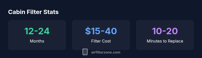Most drivers should replace the cabin air filter every 12-24 months or 12,000-20,000 miles, depending on driving conditions. If you drive in dusty or urban areas, inspect more frequently and replace as needed.