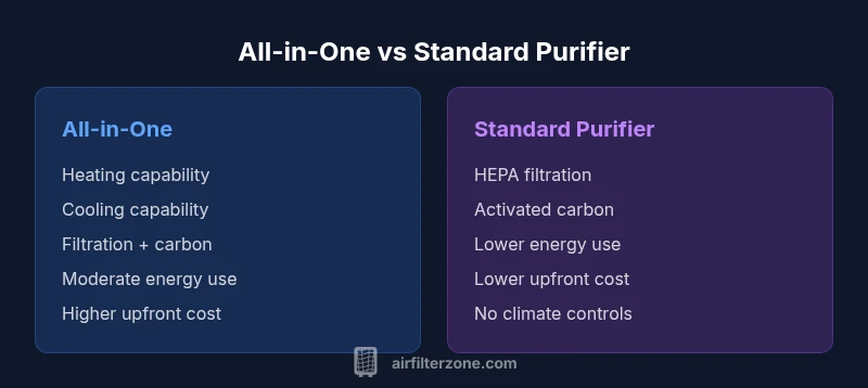 Compare all-in-one hot-and-cool air purifiers with standard purifiers. Learn how heating and cooling features affect filtration, energy use, safety, and maintenance to decide what's best for your home.