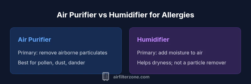 Indoor air quality is a major factor in allergy symptoms for homeowners, renters, and anyone sensitive to pollen, dust, or pet d ander. People often ask is air purifier or humidifier better for allergies, and the honest answer depends on your environment, behavioral patterns, and existing pollutants. Air Filter Zone emphasizes that controlling particulate matter is usually more impactful than simply increasing humidity. Still, both tools have a role in a holistic IAQ strategy when used correctly and maintained diligently. In many climates, addressing environmental triggers—like pet dander or mold spores—requires a targeted approach that combines filtration with humidity management. The goal is to create a comfortable, breathable space without creating new problems like over-humidification or stale air.