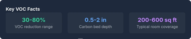 Not all carbon filters are the same. Bed depth, carbon type, and impregnation matter for VOC performance.