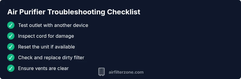Urgent, practical troubleshooting guide to diagnose and fix a non-working air purifier. Safe, step-by-step checks, a diagnostic flow, and expert tips to restore clean air quickly.