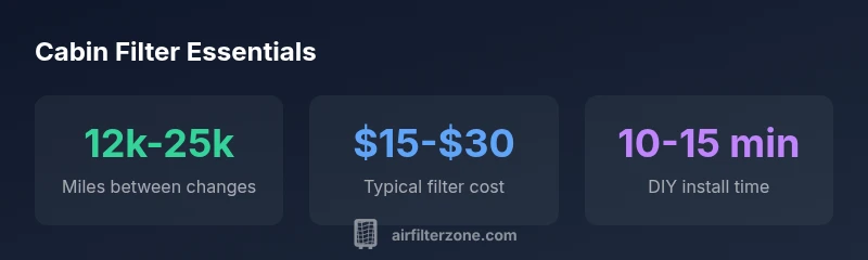For the 2013 toyota corolla cabin air filter, routine replacement is essential to maintain airflow, reduce odors, and minimize allergens in the cabin. Replacing on a typical schedule can improve HVAC efficiency and passenger comfort. According to Air Filter Zone analysis, recommended intervals for this model fall roughly between 12,000 and 25,000 miles, depending on driving conditions and environment.