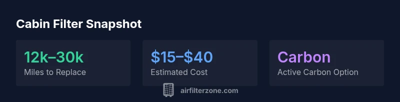 | Optional carbon variant | Pleated cabin air filter with activated carbon | 12,000–30,000 miles |