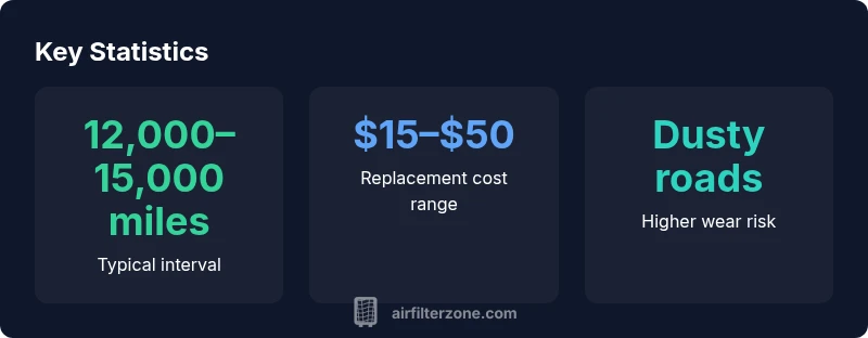 An optimization approach involves aligning replacement with your driving environment. The standard interval is 12,000–15,000 miles or 12 months, whichever comes first, but harsh conditions may warrant 6–9 months. For cost, plan on a range of a few tens of dollars for a basic OEM or aftermarket panel, with carbon-activated variants costing a bit more. Labor costs vary if you hire a shop, but DIY replacement reduces expenditure significantly. Keep in mind that carbon filters may require special handling to ensure correct fit.
