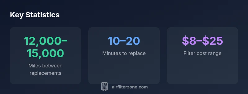 Typically replace every 12,000 to 15,000 miles or annually, depending on driving conditions. Watch for reduced airflow or odors as signs to check the filter.