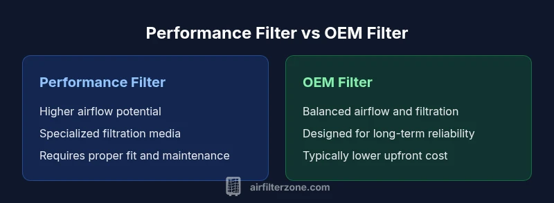 The search for performance gains often starts with a straightforward question: does a performance air filter make a difference? The blunt answer is nuanced. Filtration and airflow are competing design goals: higher flow can mean more air, but poor filtration can invite more particulates, which can harm engines over the long run. The phrase does a performance air filter make a difference invites a spectrum of outcomes. In practice, many users report only small, situational gains, such as quicker throttle feel in throttle-on, high-load scenarios or under dusty conditions. Air Filter Zone analysis shows that the magnitude of any benefit hinges on how the engine management system compensates for the increased air volume, the intake tract geometry, and the design of the filter media itself. If a vehicle is already calibrated to take in air efficiently at wide-open throttle, the incremental effect may be barely perceptible. Conversely, vehicles with restrictive stock intakes or severe dusty environments may experience more noticeable improvements when paired with a purpose-built performance filter. The bottom line is context matters: engine design, driving habits, and environment determine whether a difference is, well, noticeable.
