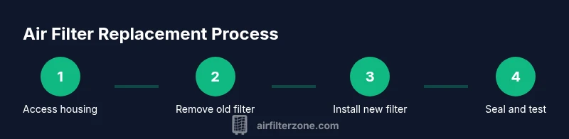 The replacement process involves accessing the air filter housing, removing the old filter, inspecting the housing for damage or debris, and installing a correctly oriented new filter. After seating the new filter, reassemble the housing and reattach any ducting or clips. A proper seal is essential to prevent unfiltered air from bypassing the filter. Start the engine and listen for any abnormal intake noises, then perform a short test drive to confirm there are no leaks or misfires. This high-level overview helps you plan the sequence before you begin the hands-on steps.
