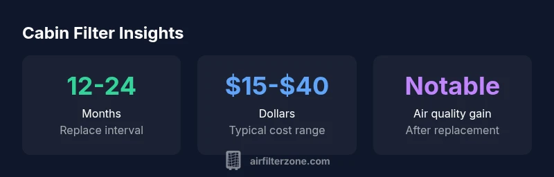 Regular maintenance of the cabin air filter is a low-cost, high-value task. Expect to pay a modest price range for standard filters, with OEM options at the higher end. DIY replacement saves labor costs and time, typically within a 15–30 minute window. In dusty climates or for allergy sufferers, consider inspecting the filter more frequently and replacing sooner. Keeping a spare filter on hand can simplify annual maintenance. This small investment helps keep interior air fresh and reduces irritants that can affect in-cabin comfort and HVAC performance.