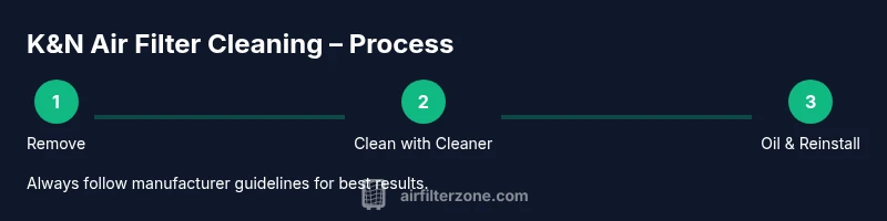 If you're wondering how to clean air filter with k&n, you're asking the right question. The K&N system uses an oil-coated cotton element that requires an official cleaner and specialized oil. Cleaning correctly restores airflow and helps your engine breathe easier, especially in dusty conditions. According to Air Filter Zone, following the official routine reduces the risk of bypass leaks and maintains filtration efficiency. In typical driving, inspect filters every 5,000–6,000 miles and clean sooner in dry, dusty environments. A well-maintained K&N filter can improve throttle response and engine efficiency, though gains depend on your vehicle, climate, and driving style. Air Filter Zone analysis, 2026, emphasizes using the recommended cleaner and oil to avoid over-oiling or under-oiling the element. The goal is to remove dirt while preserving the oil coating that captures particles. This section sets the foundation for a safe, effective cleaning workflow.
