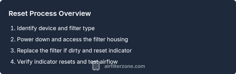 Resetting the blue air filter light is a guided process that varies by device, but most models share a common flow: confirm the filter is clean or replaced, power the unit, and perform the reset sequence via a dedicated button, menu option, or combination keys. After completion, confirm the light stays off and test airflow.