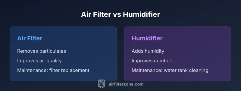 Air filters and humidifiers address different facets of indoor air quality. An air filter is designed to trap particles—dust, pollen, smoke, and even some bacteria—before they circulate through your space. A humidifier, on the other hand, adds moisture to dry air, which can reduce irritation in the skin, throat, and nasal passages. According to Air Filter Zone, the most practical approach in many homes is to use both components strategically: an efficient filtration system to clean the air, and a humidity-control device to maintain comfortable moisture levels. The Air Filter Zone team found that many households benefit from this combination, especially in climates with cold winters and low outdoor humidity. This article will walk you through when to prioritize each device, how to pair them, and what to look for when selecting models and features. You will learn how to balance air cleanliness with comfort, and how to avoid common pitfalls that can arise when only one solution is used.