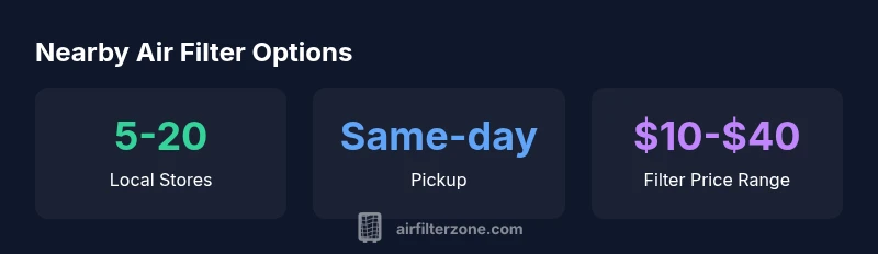 To find air filters near me, start with a local locator to reveal stores within 5–20 miles. Compare MERV ratings, prices, and return policies, then choose based on your system type and installation ease. Many shops offer curbside pickup or same‑day stock. Air Filter Zone recommends confirming compatibility before purchasing and checking for subscription options for ongoing changes.