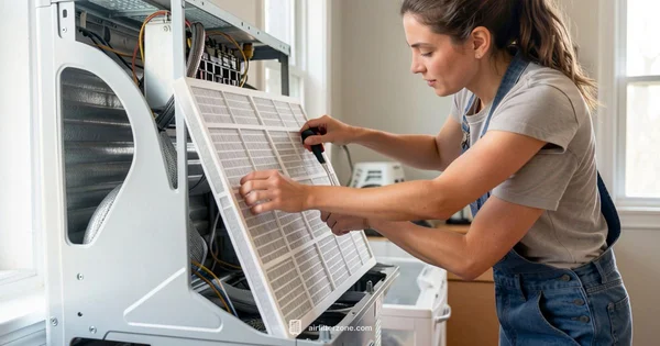 Before starting, turn off the HVAC system and remove the old filter, inspecting the housing for dust buildup and gasket integrity. Clean the slot and replace any seals if necessary to prevent air leaks. Install the new filter with the correct orientation, matching the arrow to the airflow direction printed on the frame. Keep a replacement calendar and label the date of installation to track timing. If you notice reduced airflow after installation, recheck the seal or consider a filter with a slightly lower resistance. Regular pre‑filters or initial debris removal during maintenance can help prolong the life of a fresh flow filter. For best results, combine with routine duct cleaning and a well sealed building envelope to maintain air quality improvements.