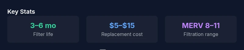 In high-traffic homes with pets or dusty conditions, replacement every 1–3 months is common. In quieter settings, every 3–6 months may suffice. Monitor air quality and visual check to adjust timing.