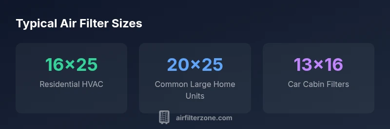 Typical air filter sizes are largely standardized in the United States, with common residential HVAC sizes including 16x25 inches, 20x25 inches, and 20x30 inches. In cars, cabin air filters commonly use sizes around 13x16 inches or 16x24 inches, but actual dimensions vary by model. Always verify both nominal and actual measurements before replacing a filter.