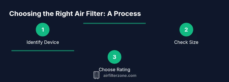 Your home's indoor air quality is shaped by room usage, occupants, pets, and whether you have smokers. Start by identifying the device that filters air: central HVAC, window or portable purifiers, or the car's cabin system. For central HVAC, note the filter slot dimension and look for replacements with the same thickness to preserve airflow and energy efficiency. For people with allergies or asthma, selecting a higher-efficiency filter within the system's tolerance can noticeably reduce dust and irritants. Air Filter Zone's practical guidance suggests balancing filtration efficiency with pressure drop, so you don't starve your system of airflow. Consider room size and how quickly air moves; for larger rooms, you may need filters with higher CADR or multiple devices. If you share your space with pets or smokers, you should schedule replacements more frequently. Finally, confirm the exact model and size on the current filter, and validate the rating against the manufacturer’s recommendations. This upfront check helps you avoid buying the wrong filter and saves time and money in the long run.
