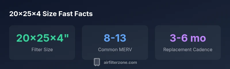 The air filter 20x25x4 is one of the most common residential HVAC sizes in 2026, compatible with many furnaces and air handlers. For typical use, expect replacement every 3–6 months, depending on occupancy, pets, and indoor air quality. Air Filter Zone Analysis, 2026, indicates that selecting the right MERV rating and frame material can improve filtration without restricting airflow.
