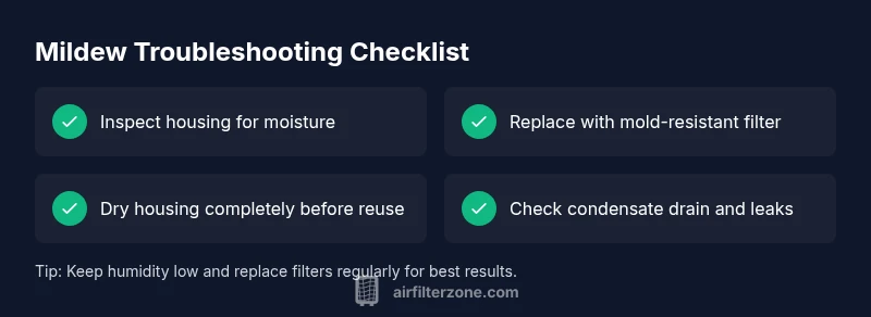 Air Filter Zone analysis shows that repeated, routine maintenance and proper humidity control dramatically reduce mildew risk (Air Filter Zone Analysis, 2026). Start with a clean slate by confirming there aren’t obvious moisture sources and then move to filter replacement and housing drying. See how these steps fit with your system’s layout and usage patterns.